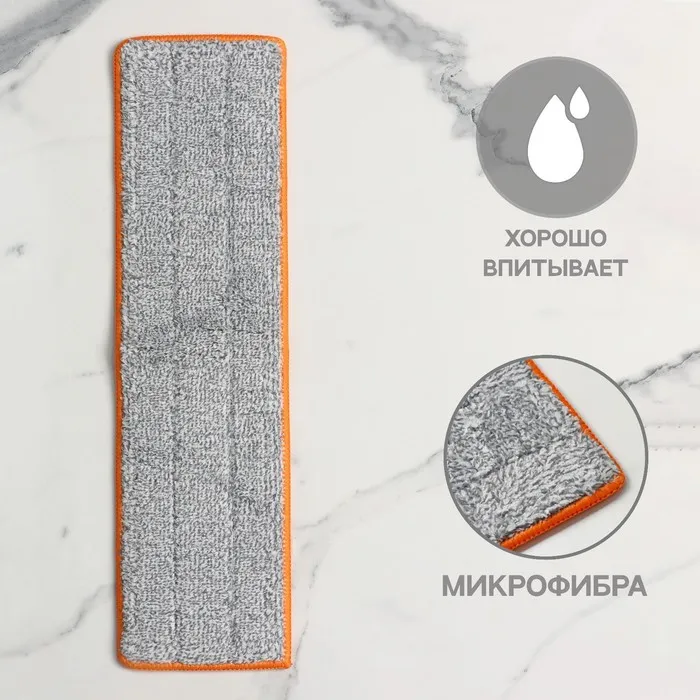 Насадка сделана из микрофибры. Она отлично подходит для мытья всех видов напольных покрытий: линолеума, ламината, паркета, кафельной плитки, мрамора. Она не царапает поверхность и отлично впитывает воду.