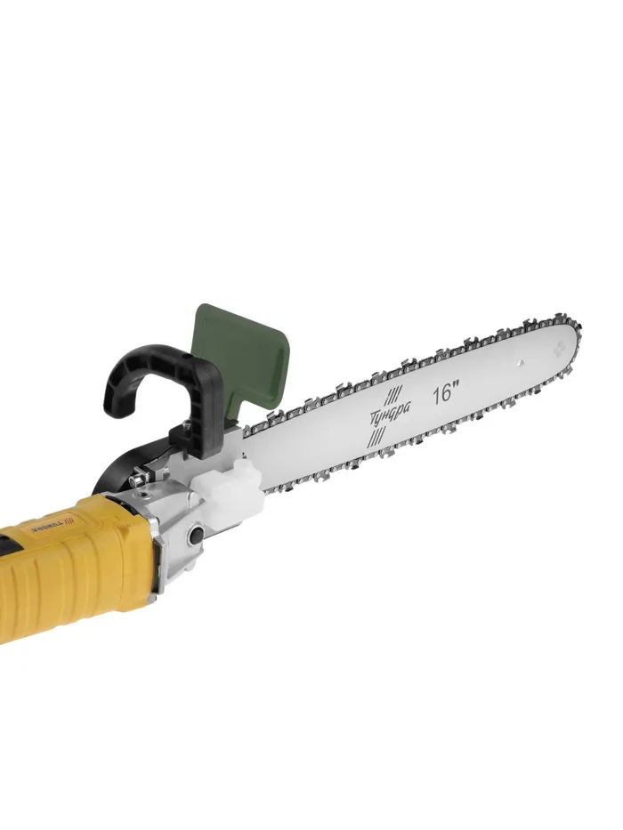 Превратите УШМ в мощную цепную пилу! Цепная насадка ТУНДРА 405 мм для углошлифовальной машины — это профессиональное решение для распиловки бревен, заготовки дров и валки деревьев. Она расширяет возможности вашего инструмента до уровня бензопилы.