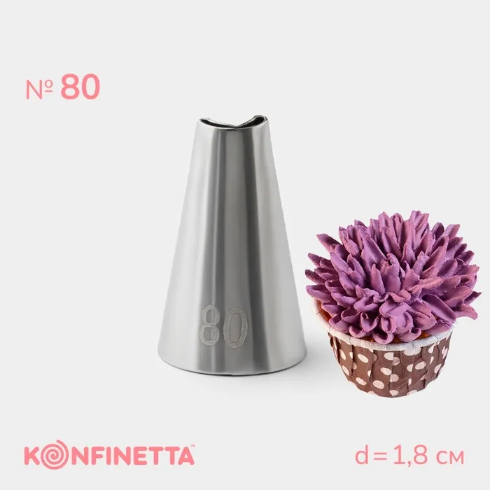 Насадка предназначена для нанесения на десерты необычных украшений из крема. Пользоваться изделием просто: достаточно присоединить его к универсальному кондитерскому мешку.