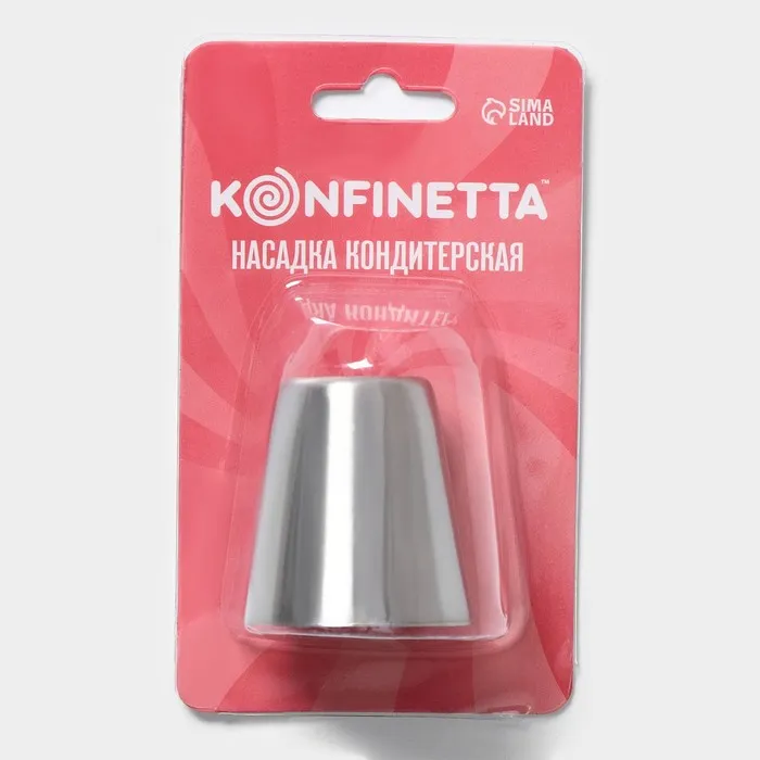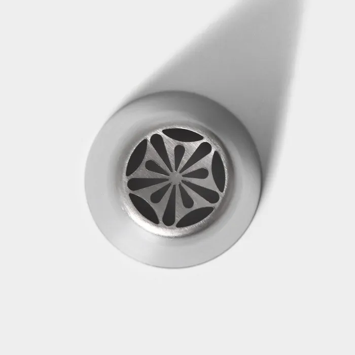 Насадка предназначена для нанесения на десерты необычных украшений из крема. Пользоваться изделием просто: достаточно присоединить его к универсальному кондитерскому мешку.