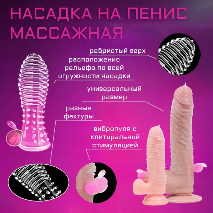 Насадка массажная ребристая, с вибростимуляцией клитора, гелевый силикон — Характеристики