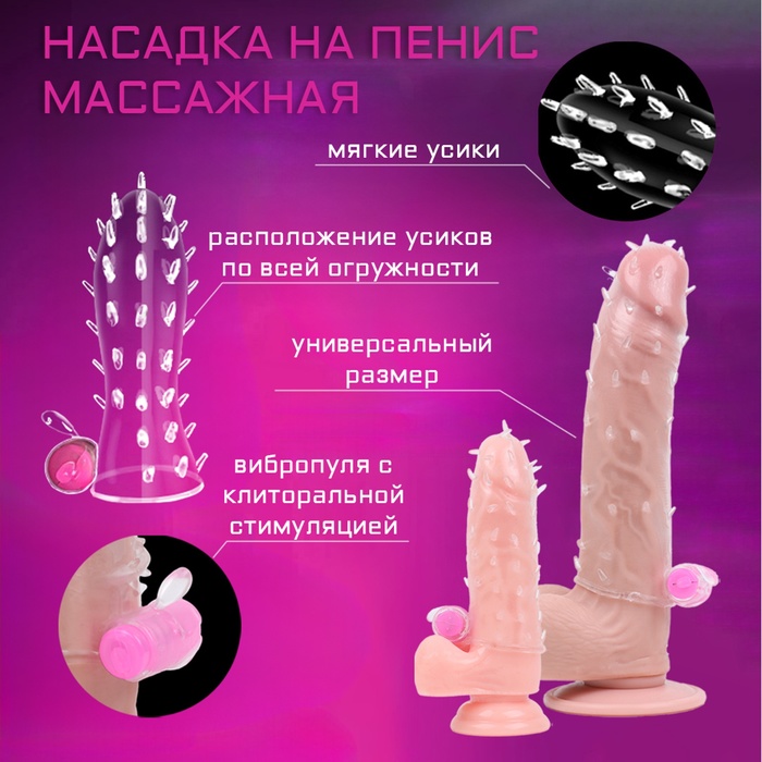 Насадка массажная с усиками, с вибростимуляцией клитора, гелевый силикон — Характеристики
