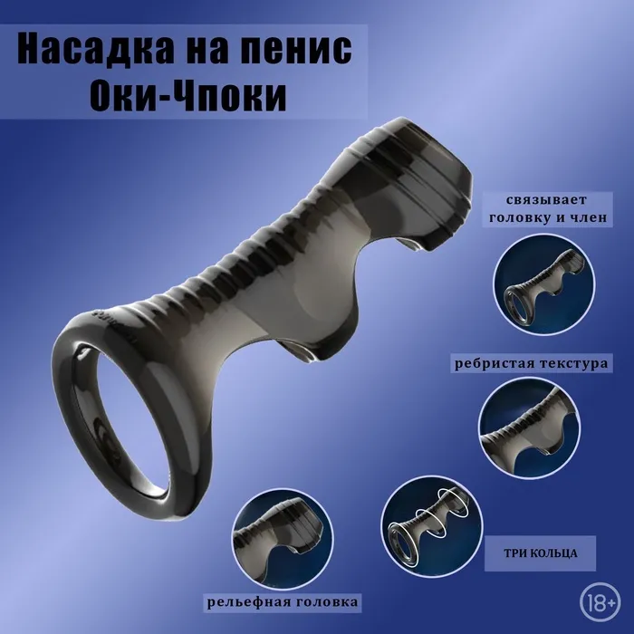Насадка на пенис мягкая стимуляция, с эрекционным кольцом, черный — Характеристики