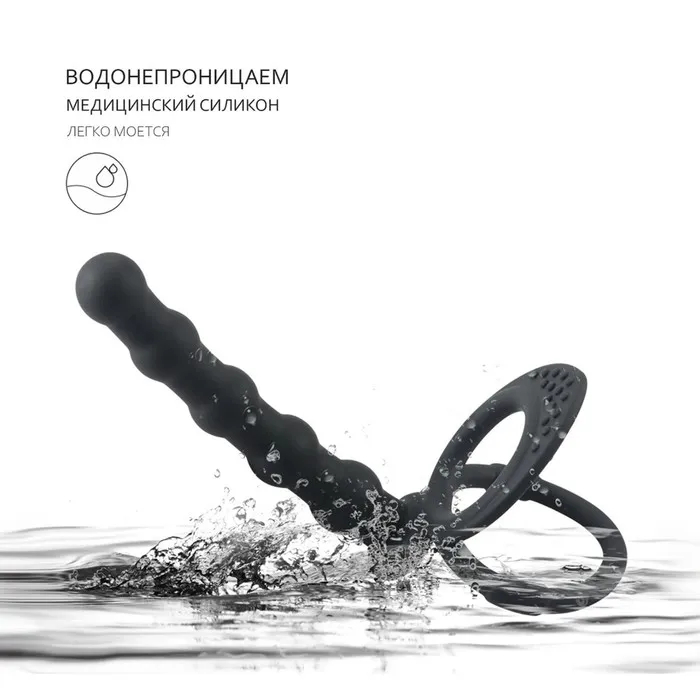 Насадка на пенис с эрекционным кольцом «Бусины», черный — Характеристики