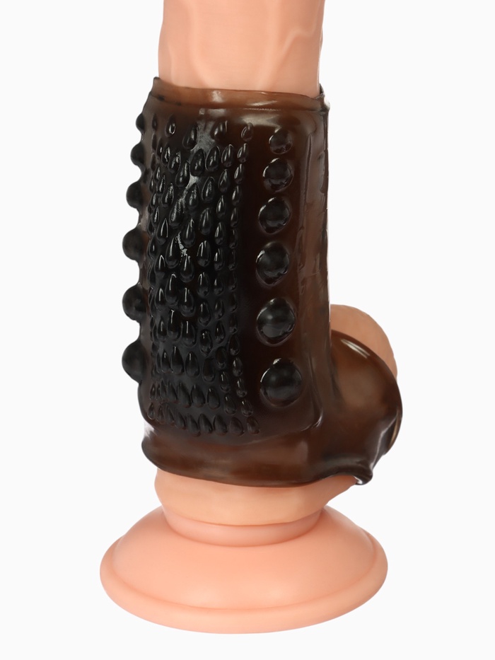 Насадка на пенис с эрекционным кольцом, гелевый силикон, стимулирующая, рельеф А, черная — Характеристики