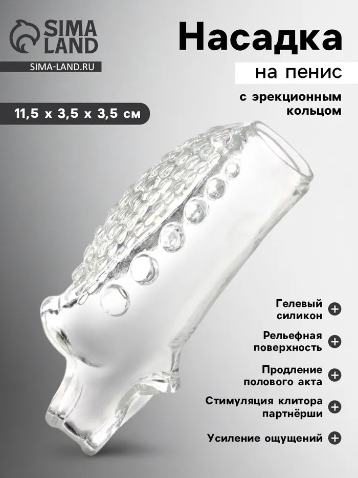 Насадка на пенис с эрекционным кольцом, гелевый силикон, стимулирующая, рельеф А, прозрачная — Характеристики