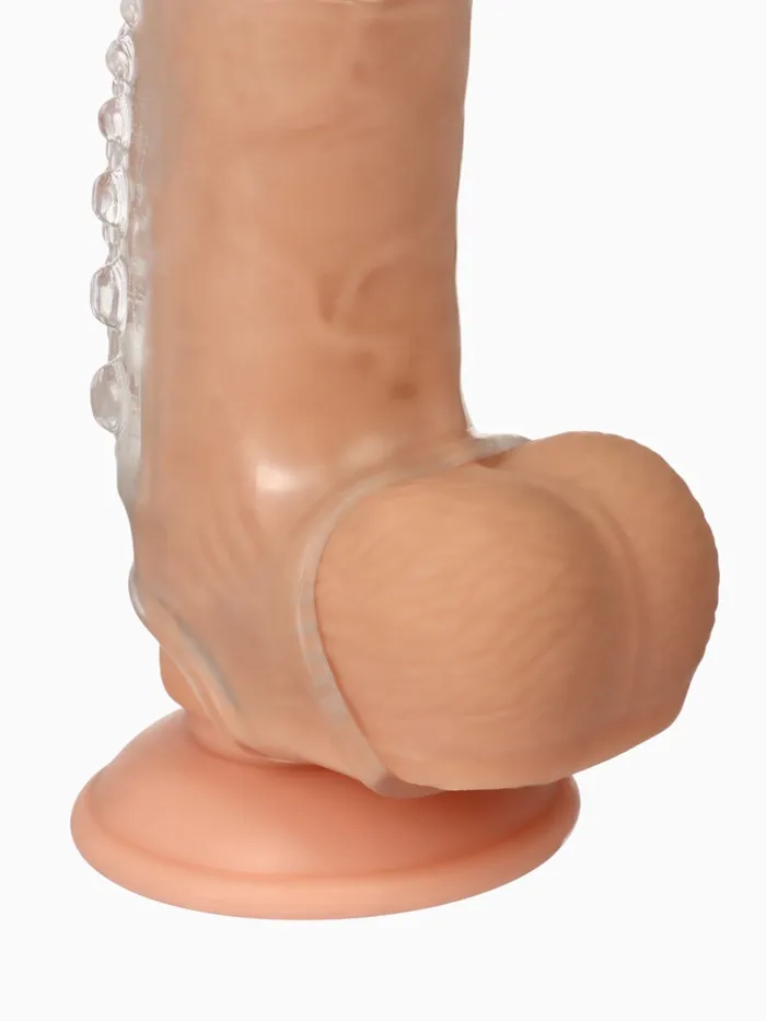 Насадка на пенис с эрекционным кольцом, гелевый силикон, стимулирующая, рельеф А, прозрачная