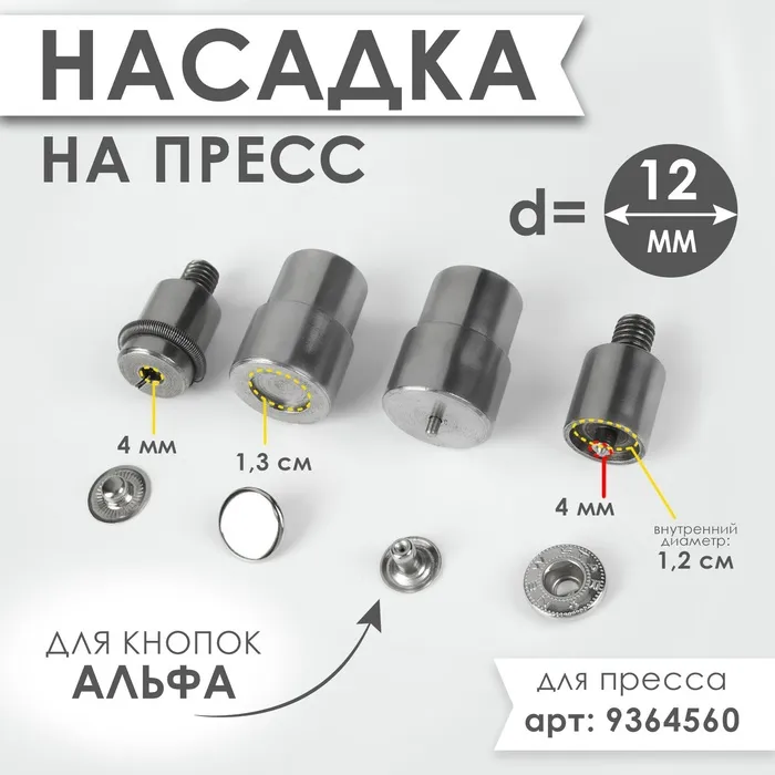 Насадки используются как дополнительные комплектующие для ручного пресса. Эта насадка подойдёт для установки кнопок Альфа диаметром 12 мм.