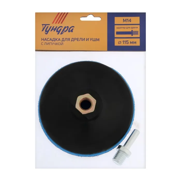 Насадка с липучкой для дрели и УШМ ТУНДРА, М14, с адаптером, твердая, 115 мм — Характеристики