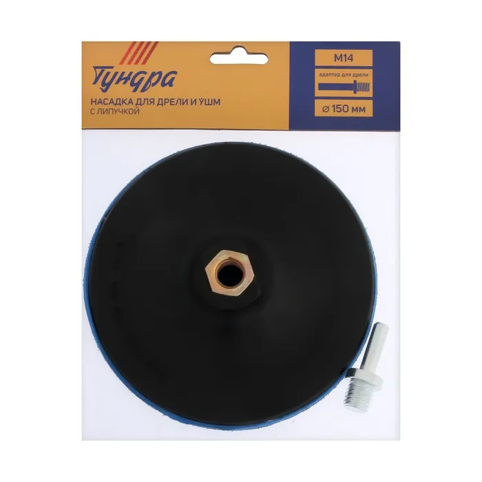 Насадка с липучкой для дрели и УШМ ТУНДРА, М14, с адаптером, твердая, 150 мм — Характеристики