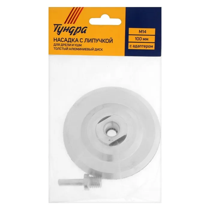Насадка с липучкой для дрели и УШМ ТУНДРА, толстый алюминиевый диск, с адаптером, 100 мм — Характеристики