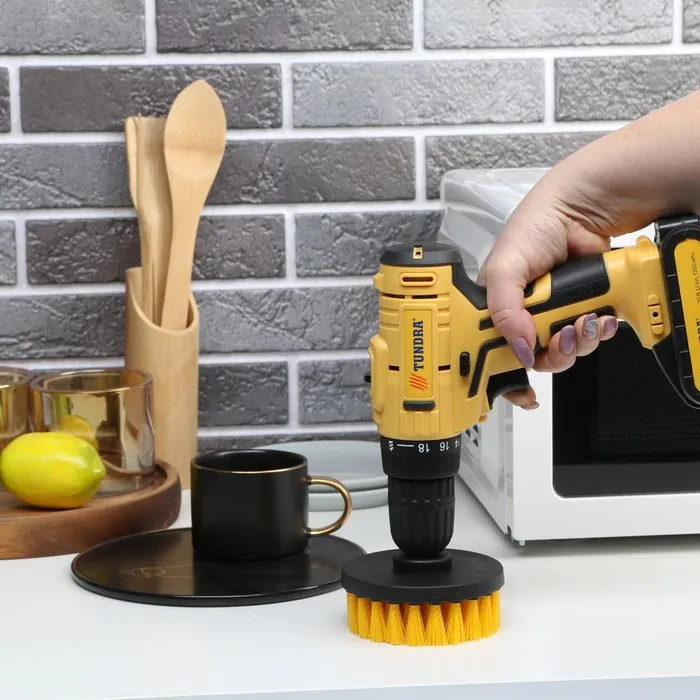 Насадка щётка ТУНДРА предназначена для совместного использования с шуруповёртом для отчистки поверхности от загрязнений.