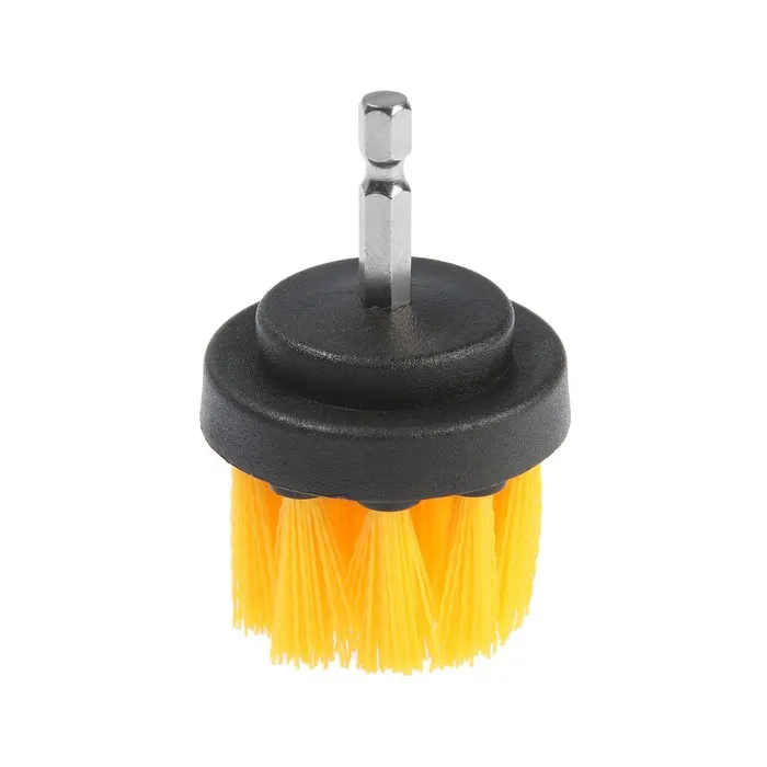Корпус щётки выполнен из прочного пластика. Щетина выполнена из нейлона средней жёсткости. Диаметр щётки составляет 45 мм, высота 25 мм. Шестигранный хвостовик надёжно фиксируется в патроне инструмента.