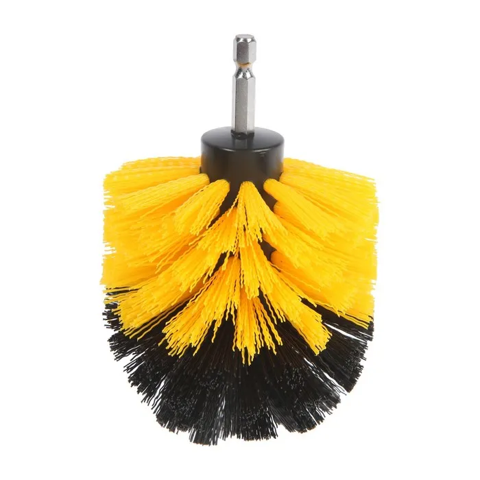 Корпус щётки выполнен из прочного пластика. Щетина выполнена из нейлона средней жёсткости. Диаметр щётки составляет 87 мм, высота 125 мм. Шестигранный хвостовик надёжно фиксируется в патроне инструмента.