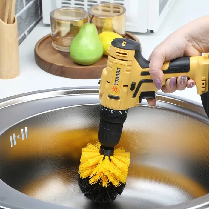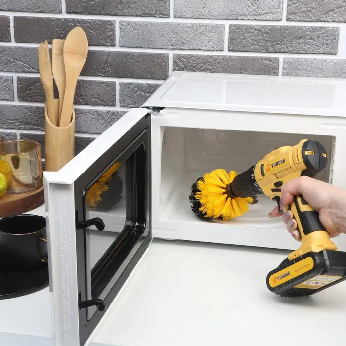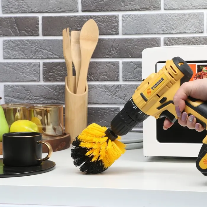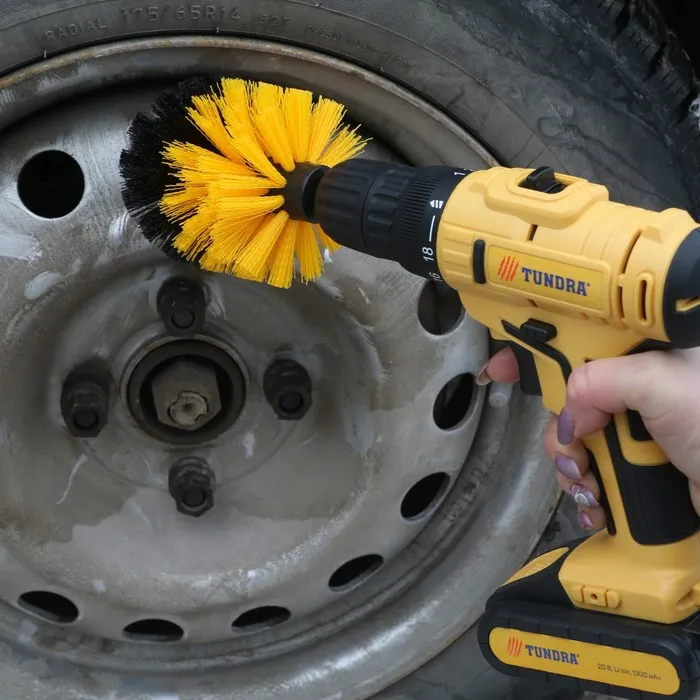 Насадка щётка ТУНДРА предназначена для совместного использования с шуруповёртом для отчистки поверхности от загрязнений.