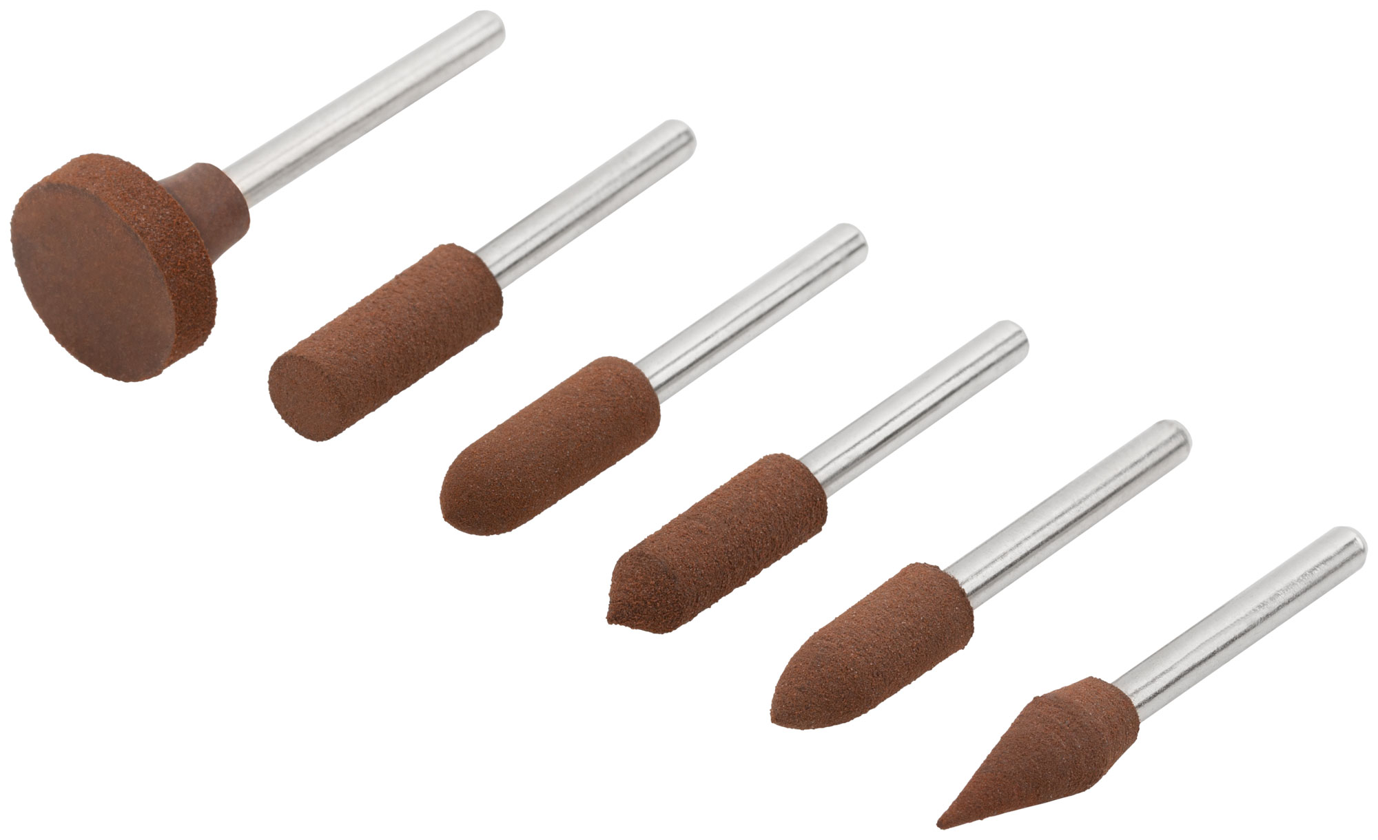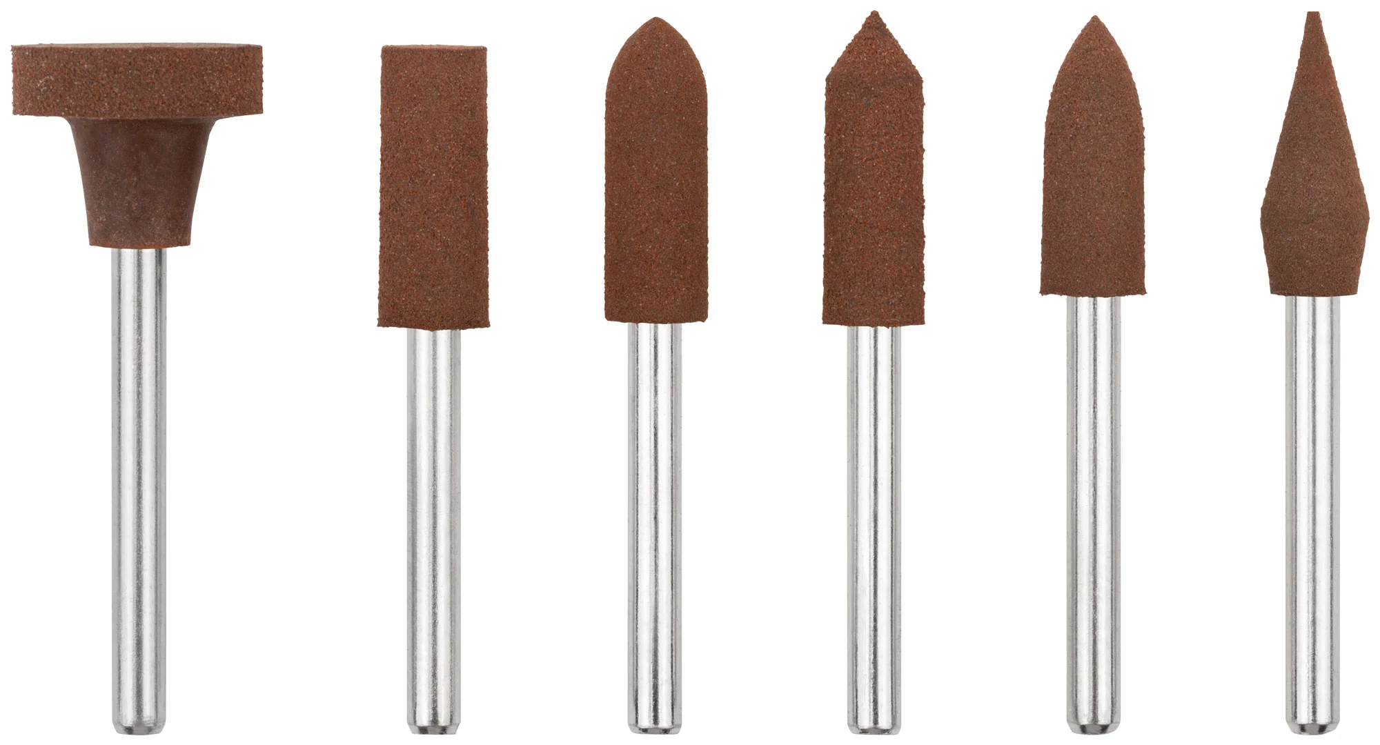 Каждая насадка изготовлена из резины с зернистостью P150, что обеспечивает оптимальную абразивную способность. Хвостовик из инструментальной стали диаметром 3,1 мм обеспечивает надежное крепление в патроне инструмента, а корундовая смесь усиливает эффект полировки.
