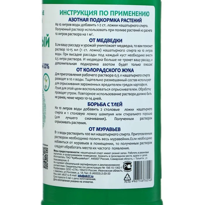Особенно азот важен растениям в период начала вегетации, когда происходит наращивание зеленой массы. В Нашатырном спирте ""СТК"" этот химический элемент находится в особой форме. Благодаря этому он оказывается неспособен накапливаться в овощах, фруктах в виде нитратов.