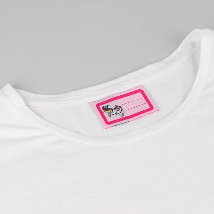 Бирки не линяют, выдерживают любую стирку. Вы просто пришиваете готовую метку в нужное место, пишете на ней имя ребёнка перманентным маркером или вышиваете нитками — и вещь сразу приобретает индивидуальность. Всем будет ясно, кто её владелец.