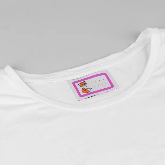 Бирки не линяют, выдерживают любую стирку. Вы просто пришиваете готовую метку в нужное место, пишете на ней имя ребёнка перманентным маркером или вышиваете нитками — и вещь сразу приобретает индивидуальность. Всем будет ясно, кто её владелец.
