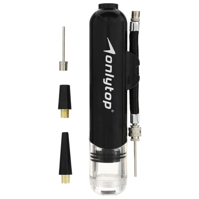 Система двойного действия позволяет эффективно и быстро накачивать изделия. Насос работает как при поступательном, так и при возвратном движении поршня. В комплекте есть гибкий шланг и 3 насадки для мячей и надувных изделий. Благодаря небольшим габаритам насос удобно брать собой в поездку.