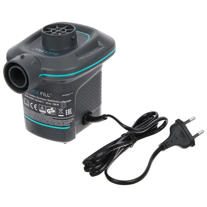 Электрический насос Intex 66640 работает от электрической сети 220В. С помощью данного насоса можно накачивать или сдувать любые надувные изделия производства Intex. В комплекте 3 насадки.