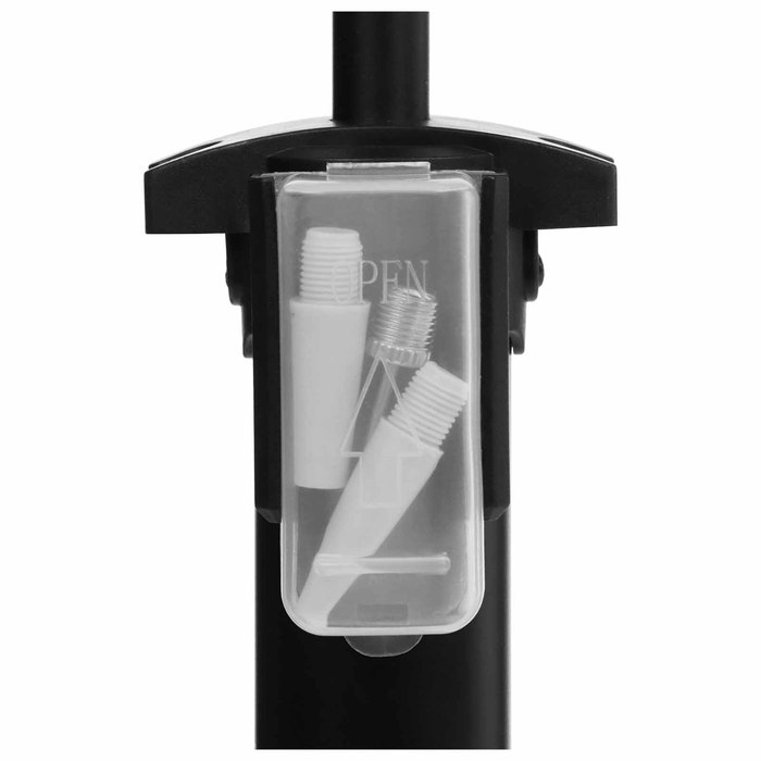 В комплекте есть 3 насадки, которые расположены в контейнере на корпусе насоса. Материал цилиндра изготовлен из пластика.