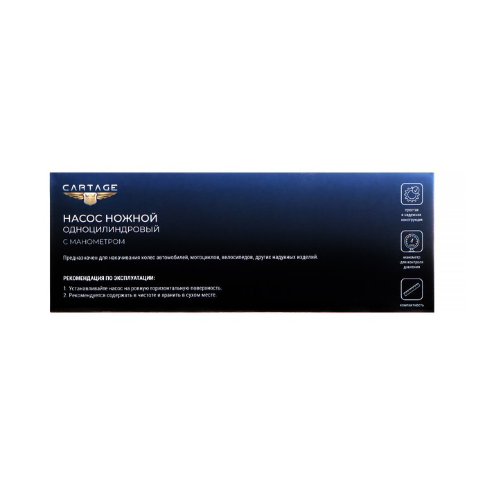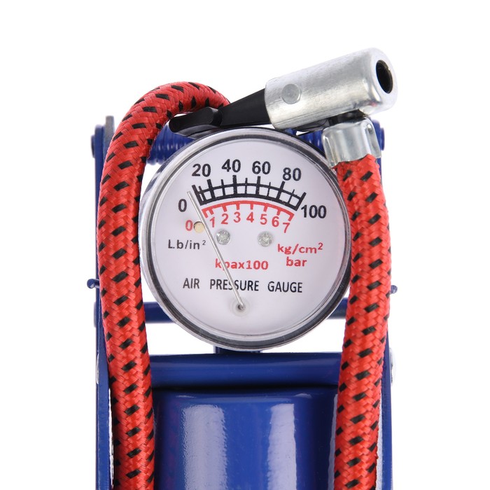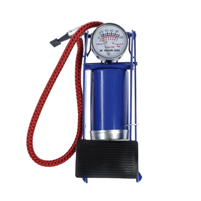 Ножной насос применяется для накачивания шин автомобилей, мотоциклов и велосипедов, а также надувных детских игрушек, матрасов, спортивных мячей и других подобных изделий. Насос оснащён манометром для измерения давления воздуха. Для удобства пользователя педаль насоса имеет специальную рельефную противоскользящую накладку.