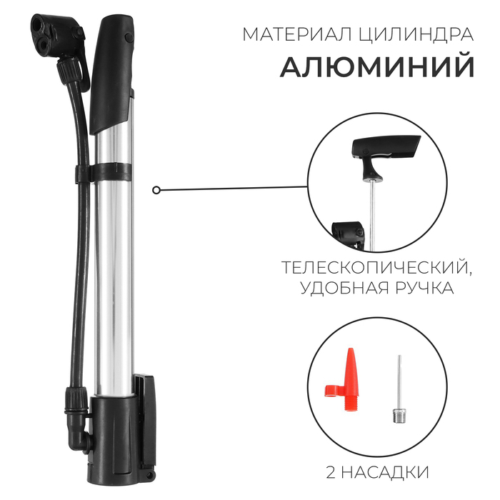 Насос ручной Dream Bike, со шлангом, цвет серебристый — Характеристики