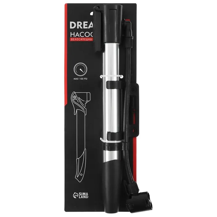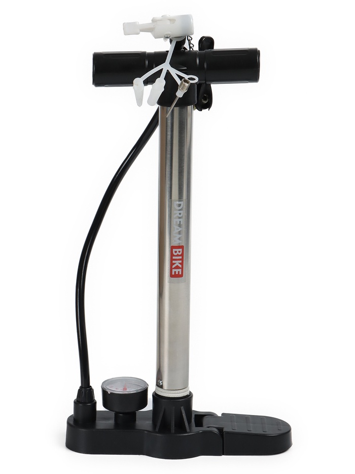 Насос Dream Bike легко и быстро поднимет давление до 100 PSI – надёжное решение для поездок и тренировок. В комплект входит 2 насадки.