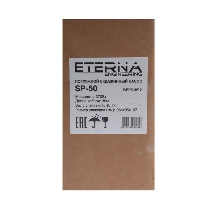 Насос скважинный ETERNA SP-50, центробежный, 370 Вт, напор 52 м, 47 л/мин, кабель 30 м — Характеристики