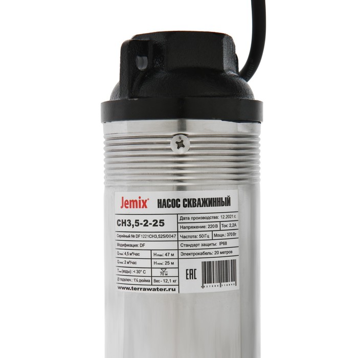 Насос скважинный JEMIX СН 3.5-2-25, центробежный, 370 Вт, напор 47 м, 75 л/мин, кабель 20 м — Характеристики