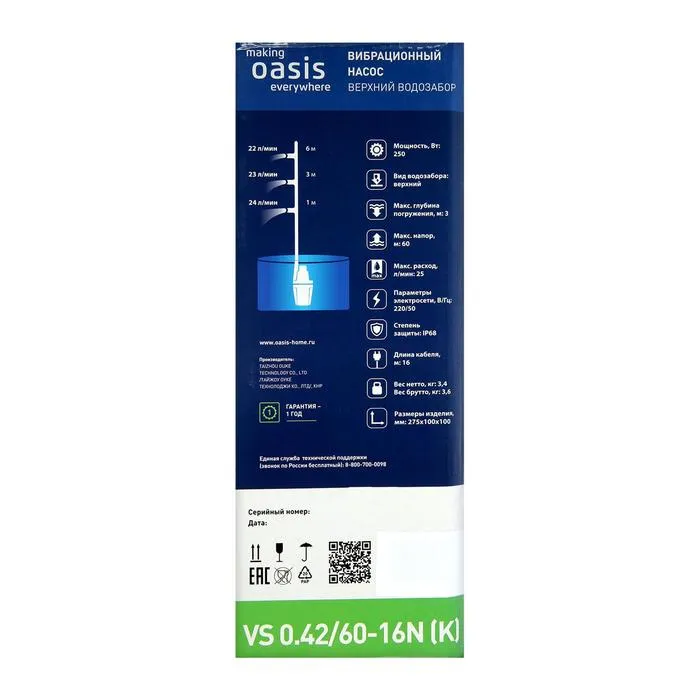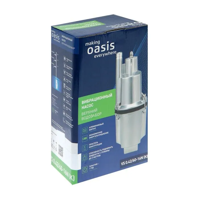 Насос вибрационный Oasis VS 0.42/60 - 16N, верхний забор, напор 60 м, 25 л/мин, 16 м — Характеристики