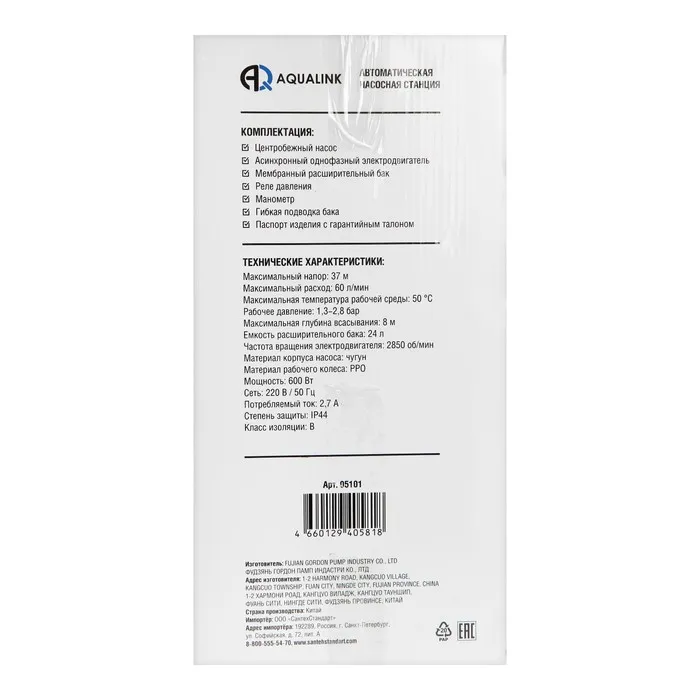 Автоматическая насосная станция AQUALINK используется для работы с чистыми жидкостями. Способна поднимать воду с глубины 8 м.