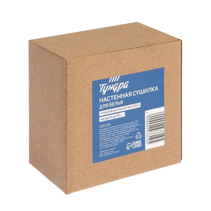 Настенная сушилка для белья ТУНДРА, стальной вытяжной трос 2.8 м нагрузка до 5 кг — Характеристики