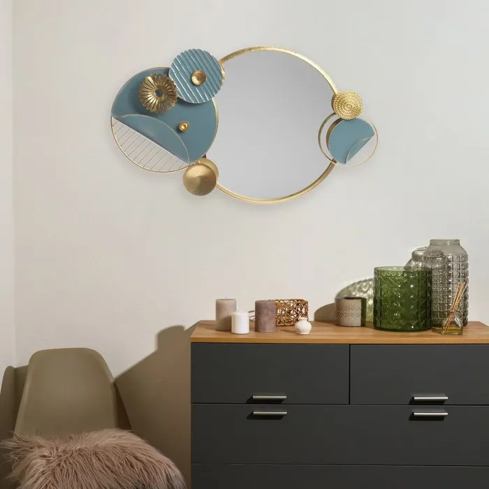 Декор настенный с зеркалом «Стиль», панно металл, сине-золотой, 59.7×98.4×6.4 см