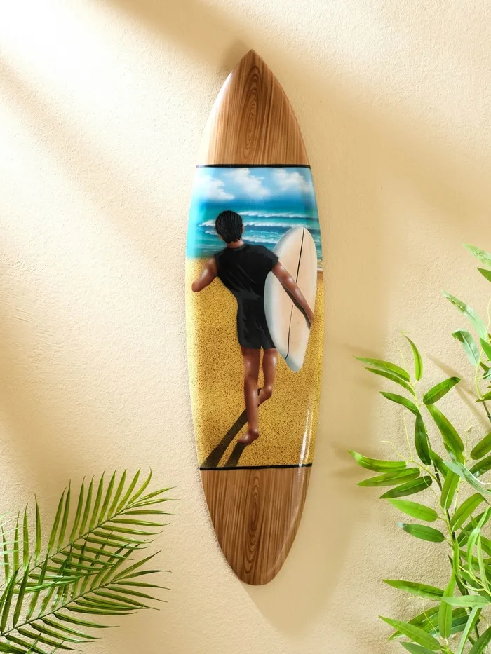 Панно «Доска для сёрфа Сёрфингист», дерево, 80×21 см