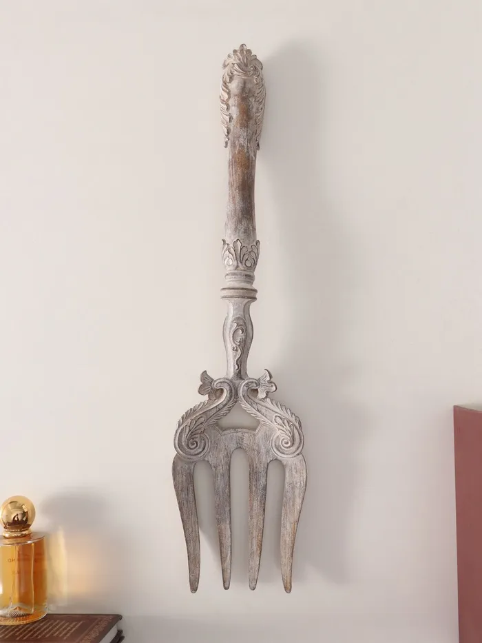 Панно интерьерное полистоун "Винтажная вилка" белая патина 11х46х4,5 см