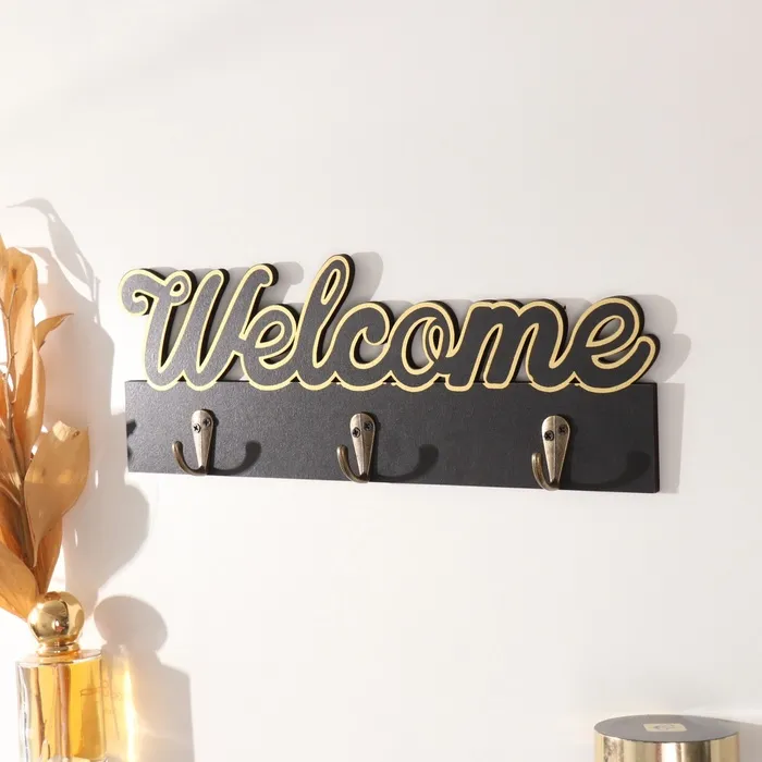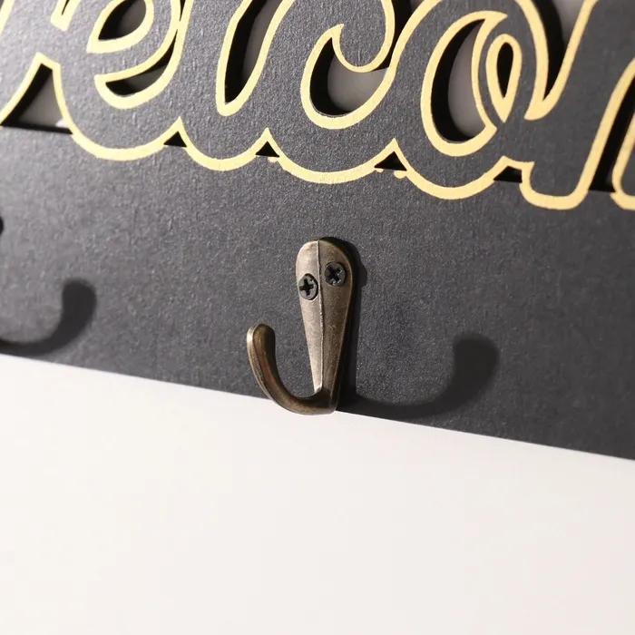 Настенные крючки декоративные «Добро пожаловать», дерево, чёрный с золотом, 3×29.5×10.5 см — Характеристики