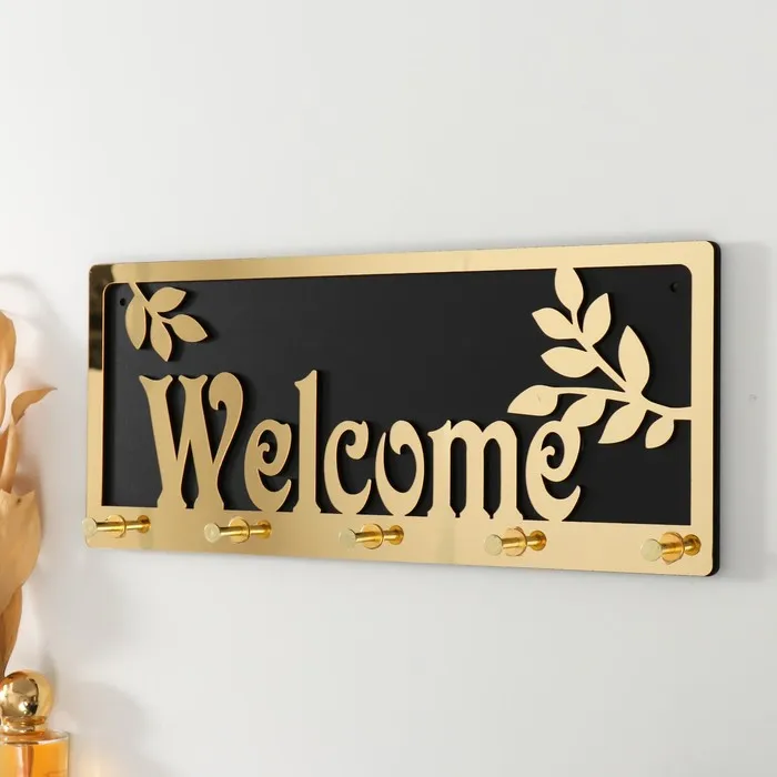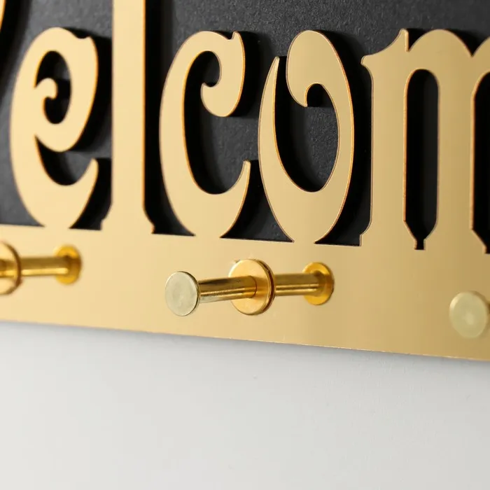 Настенные крючки декоративные «Добро пожаловать», дерево, чёрный, зеркальный, 3.1×34×14.4 см — Характеристики
