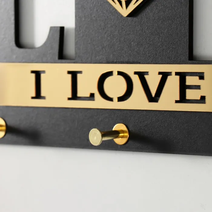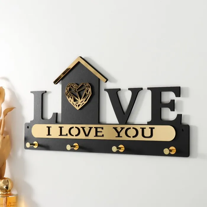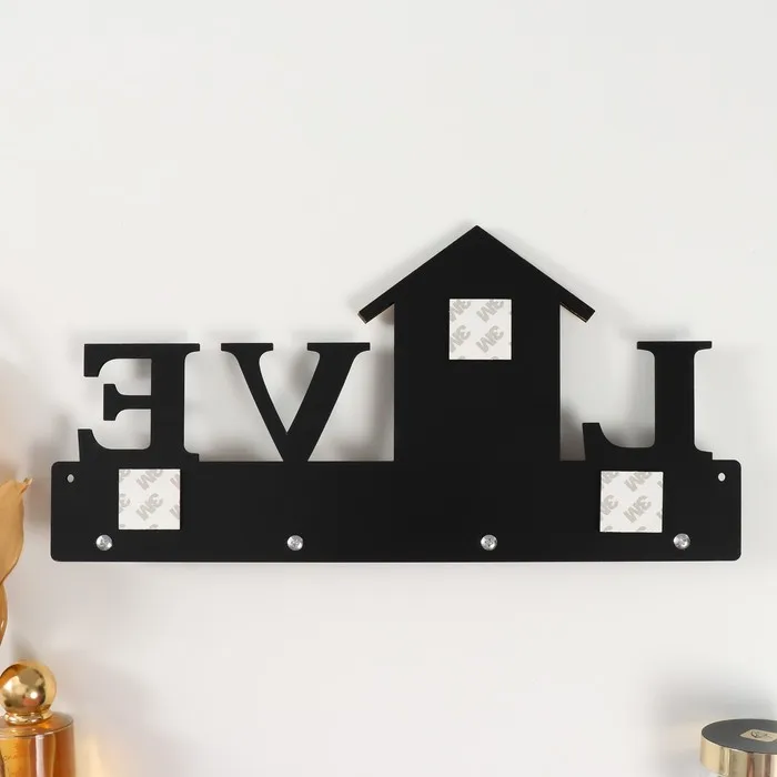 Настенные крючки декоративные «Дом с сердцем», дерево, чёрный, зеркальный, 2.8×33.8×16.8 см — Характеристики