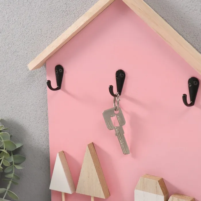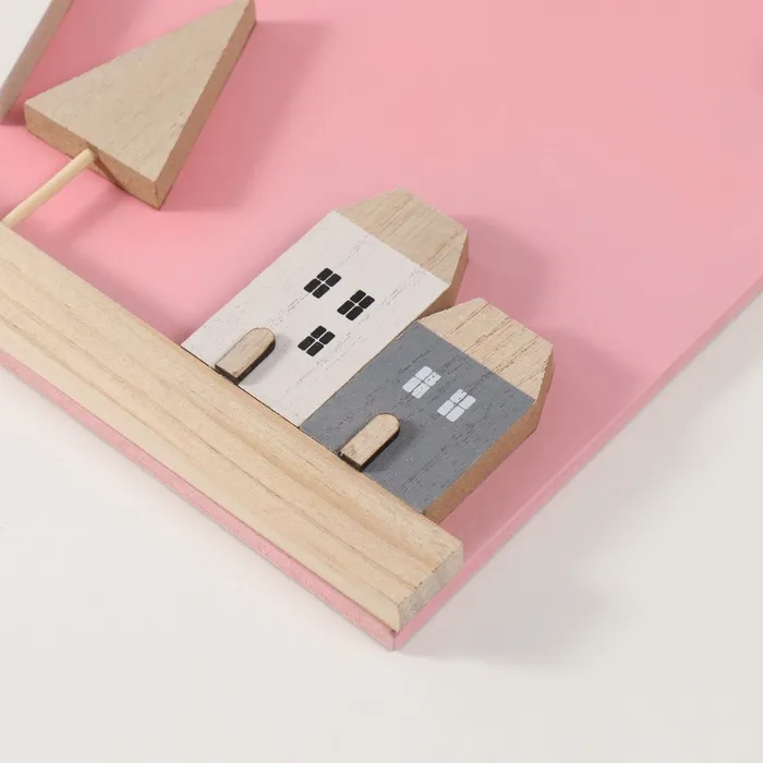 Настенные крючки декоративные «Домики и деревья», дерево, розовый, 28×33.5 см — Характеристики