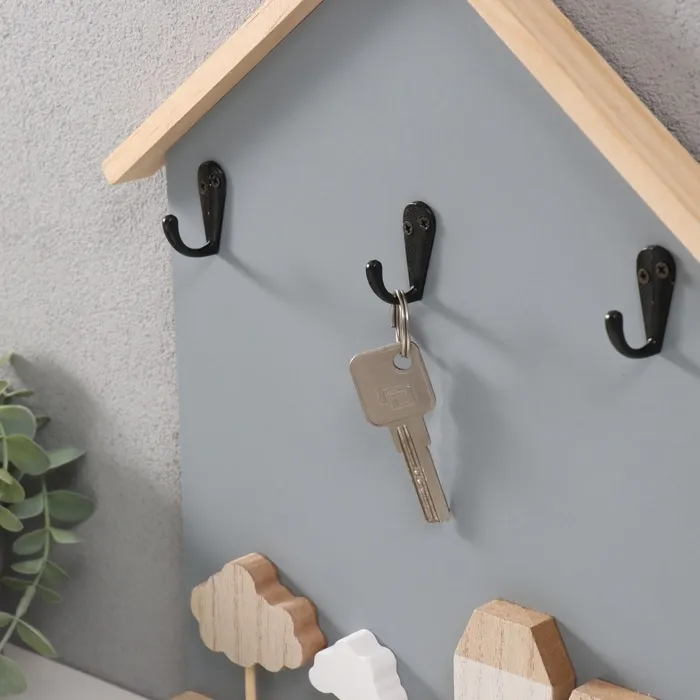 Настенные крючки декоративные «Домики и деревья», дерево, серый, 28×33.5 см — Характеристики