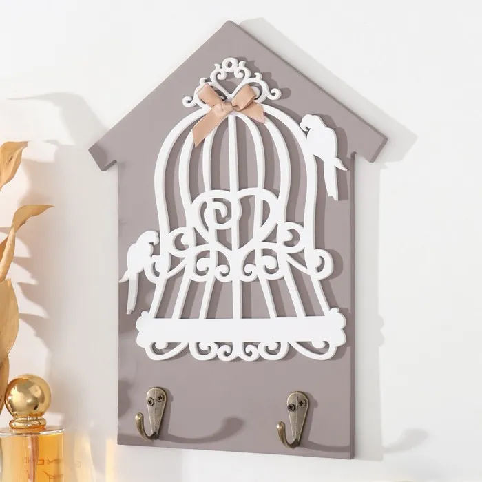 Настенные крючки декоративные «Два попугая и клетка», дерево, 20×0.5×26 см — Характеристики