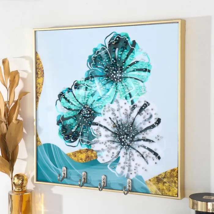 Настенные крючки декоративные «Хризантемы», 4 крючка, пластик, МДФ, стразы, золото, 29×1.8×29 см — Характеристики