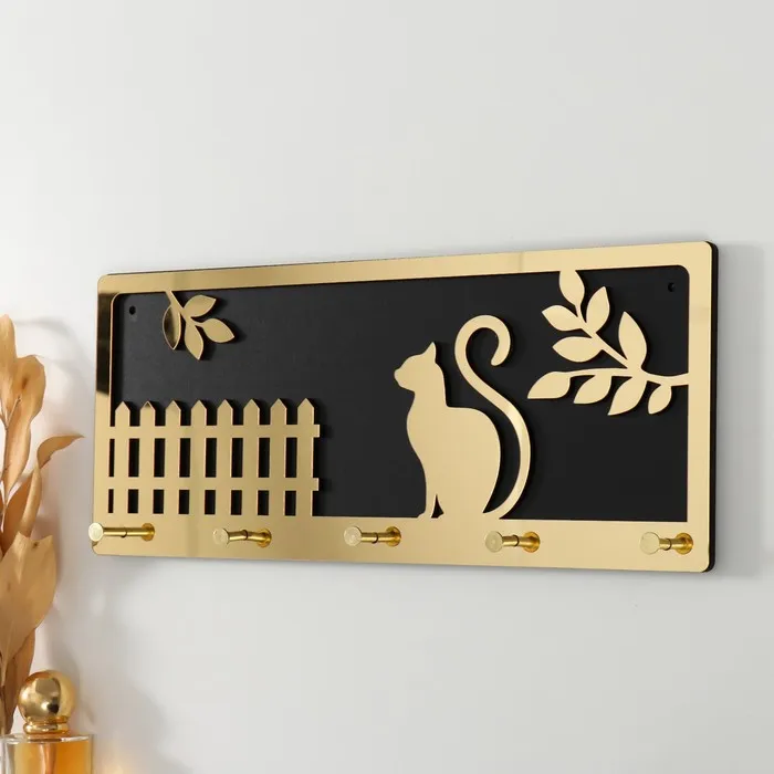 Настенные крючки декоративные «Кошка у забора», дерево, чёрный, зеркальный, 3.1×34×14.4 см — Характеристики