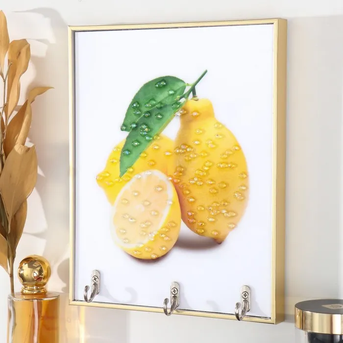 Настенные крючки декоративные «Лимонная свежесть», 3 крючка, пластик, МДФ, стразы, золото, 18.5×1.8×23.5 см — Характеристики