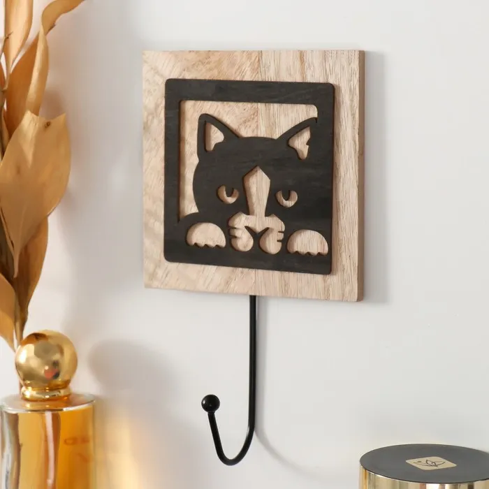 Настенные крючки декоративные «Любопытный котик», дерево, 19.5×11×4.3 см — Характеристики