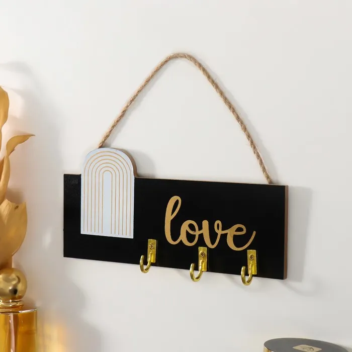 Настенные крючки декоративные «Любовь. Абстракция. Радуга», дерево, чёрная с золотом, 20×9.3 см — Характеристики