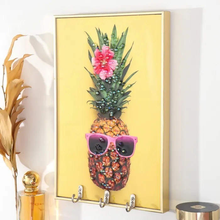 Настенные крючки декоративные «Модный ананас», 3 крючка, пластик, МДФ, стразы, золото, 19.3×1.8×29 см — Характеристики