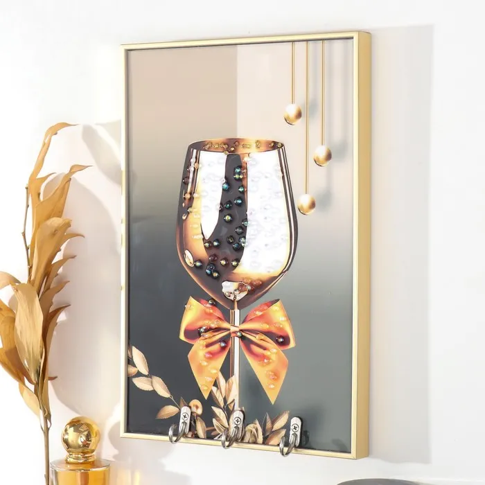 Настенные крючки декоративные «Праздничный бокал», 3 крючка, пластик, МДФ, стразы, золото, 19.3×1.8×29 см — Характеристики